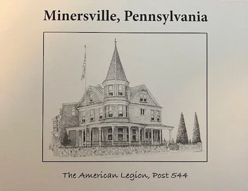 This lovely three-dimensional ornament, the newest in our collection, memorializes The American Legion, Post 544 in Minersville, Pa., as it appeared circa 1921. It is made of solid brass, colorized, and finished with polished brass details and features a flag pole with the American flag unfurled. Beneath is a sign that reads “The American Legion, Post 544 Minersville, PA.” Included is a gold-tinted cord for hanging. The ornament measures approximately 2-3/4 inches wide and 3-1/2 inches high.